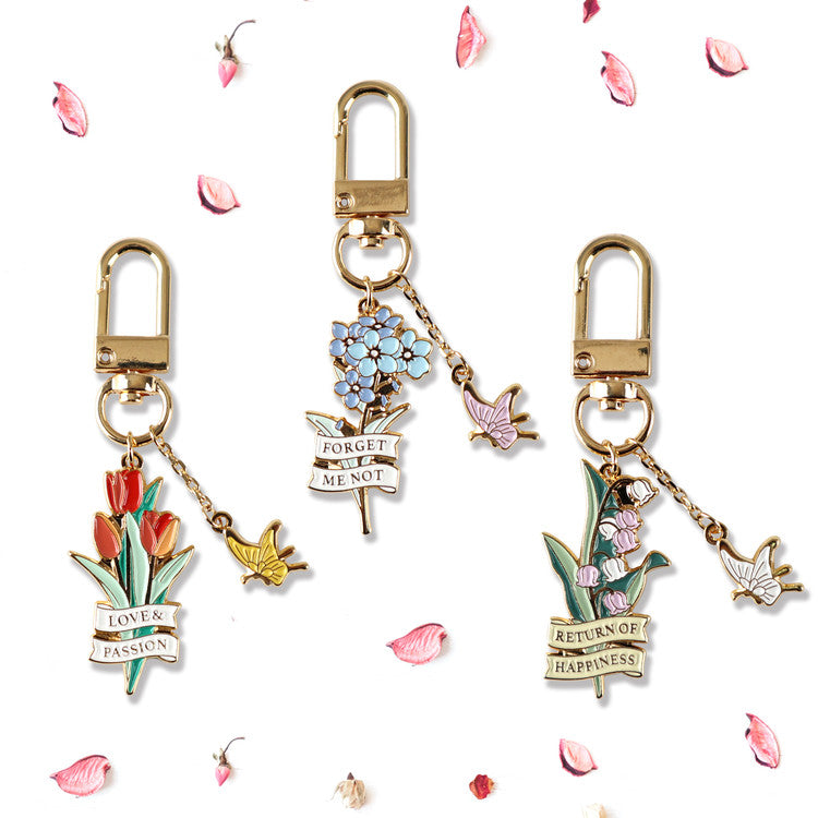 Celebrate the timeless beauty of flowers through this elegant enamel keychain, inspired by the symbolic meanings of three cherished blooms.